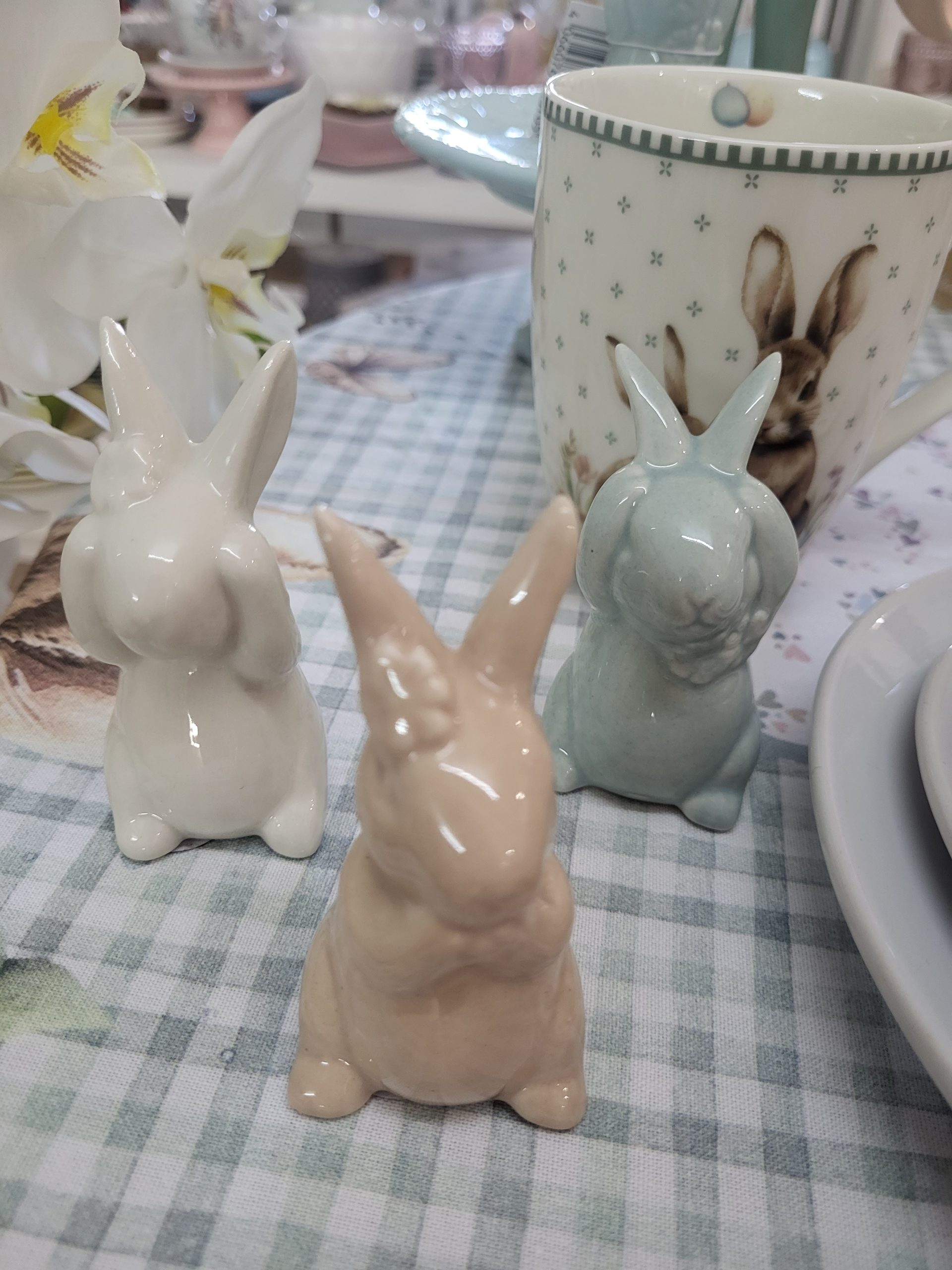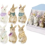Coelhos com flores em tons pastel e laços delicados , estes coelhinhos celebram a primavera . São perfeitos para centros de mesa ou pequenos apontamentos decorativos na época da Páscoa .